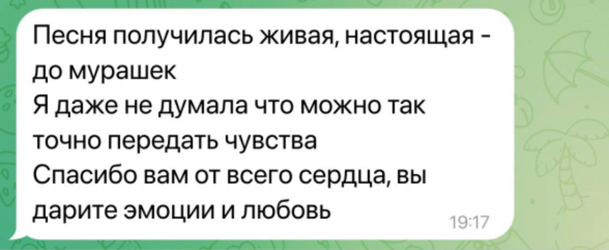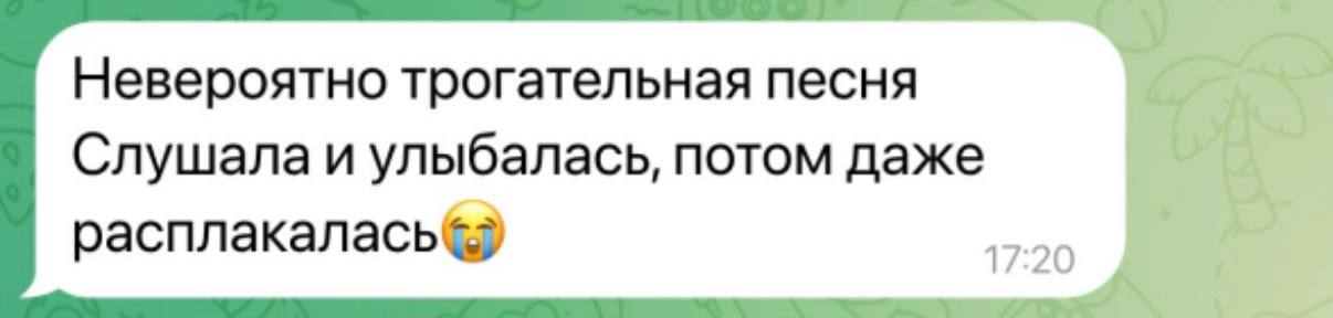 Опираемся на личные истории и интонации получателя, поэтому песня вызывает отклик с первого прослушивания и остаётся значимой.